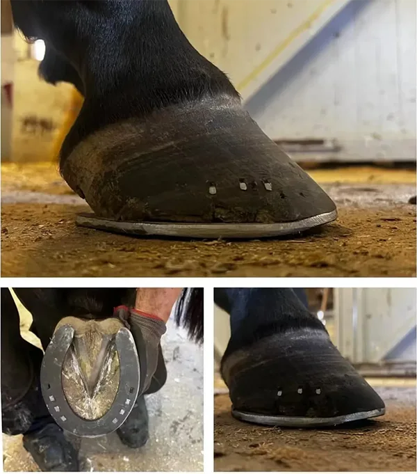 Vi använder en robust aluminiumsko som är både lätt och har utmärkta slitegenskaper. Haozhifeng®’ lättviktshästskor i aluminium håller minst 6 veckor på samma sätt som en spik på skon.